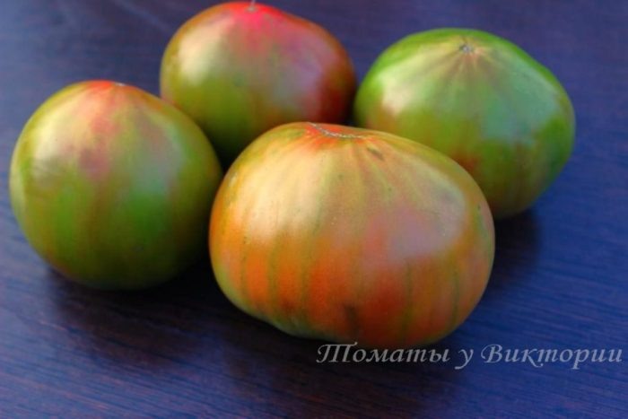 Плоды проходят интересную динамику окраски: зеленый фон сменяется багрянцем, который мягко растет по мере созревания. Мякоть мясистая, с лёгкой кислинкой, что делает их универсальными для салатов и заготовок.