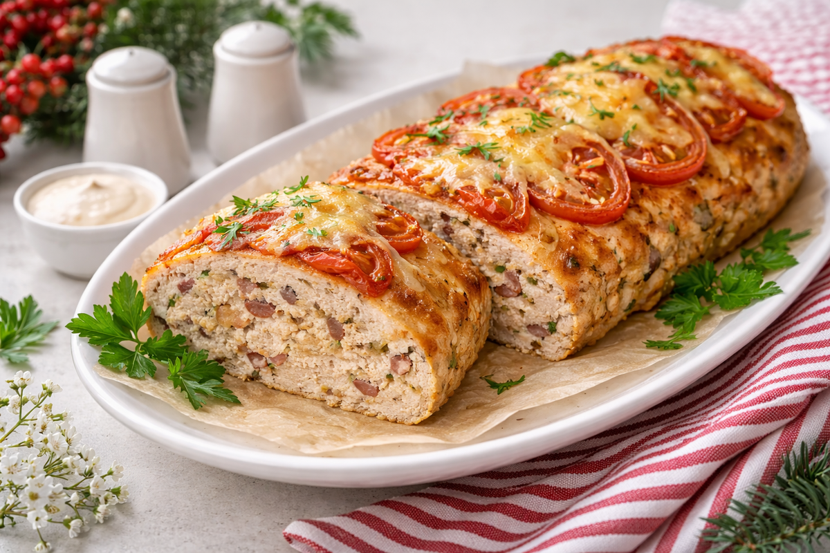 Если хочется подать на новогодний стол что-то необычное, но без сложных манипуляций, этот куриный батон идеальный вариант. По сути, это сочный хлебец из куриного филе с сыром и овощами, который отлично держит форму, красиво нарезается и подходит и как горячее, и как холодная закуска. А маленький секрет лук, обжаренный на беконе, делает вкус намного ярче и праздничнее, пишет PopCornNews.