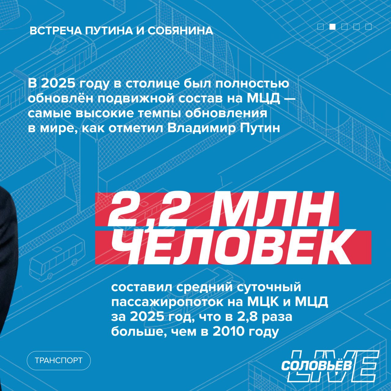 В 2025-м мы проделали огромную работу по развитию транспортной системы столицы. В частности, завершили обновление подвижного состава на всех четырёх диаметрах, закончили основной участок Троицкой линии. В этом году откроем первые станции Рублёво-Архангельской ветки, продолжим строить Бирюлёвскую линию, а также станции "Гольяново" и "Достоевская". Наметили продление Сокольнической и Филёвской линий, написал Сергей Собянин в своём блоге в Max после встречи с президентом.