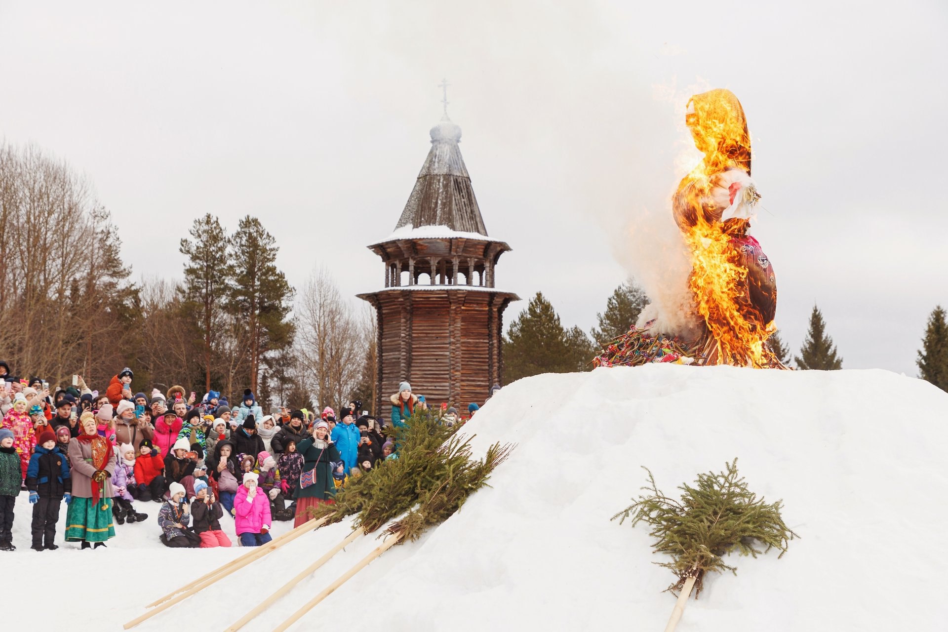Завершится праздник взятием большой снежной крепости и сжиганием Масленицы на угоре за берёзовой рощей.