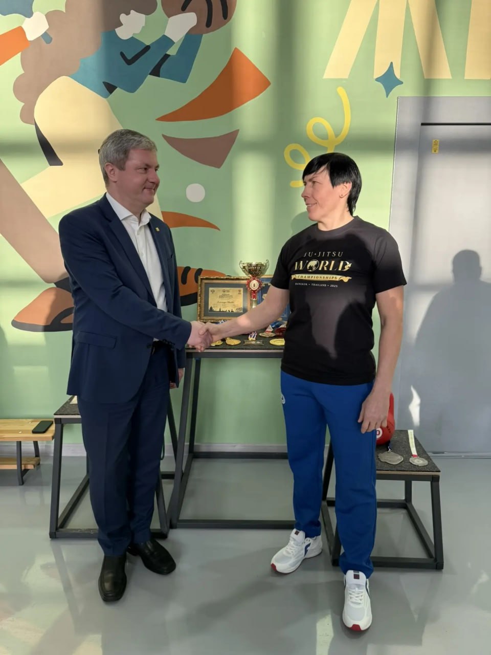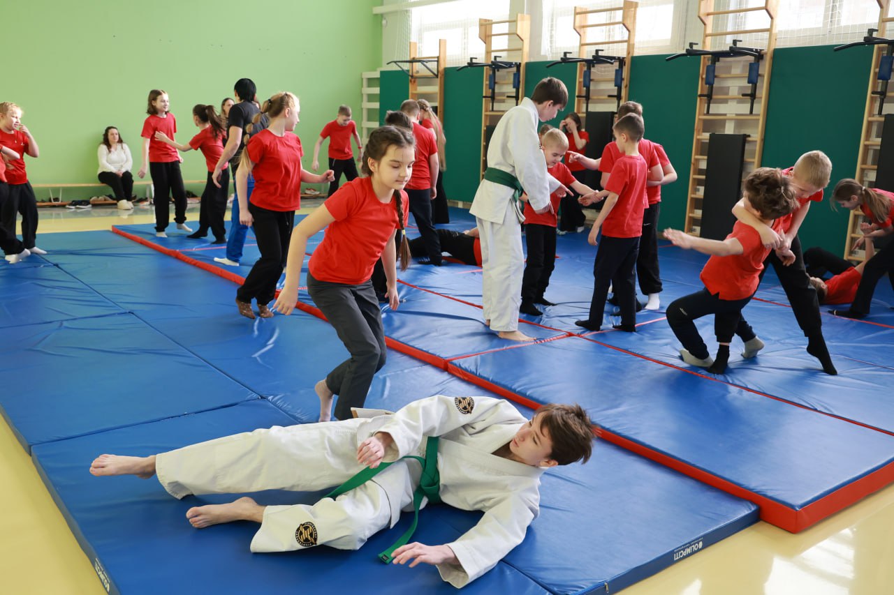 Сегодня новый спортзал школы № 10 стал площадкой для открытого урока 5-кратного чемпиона мира по джиу-джитсу Александры Ивановой.