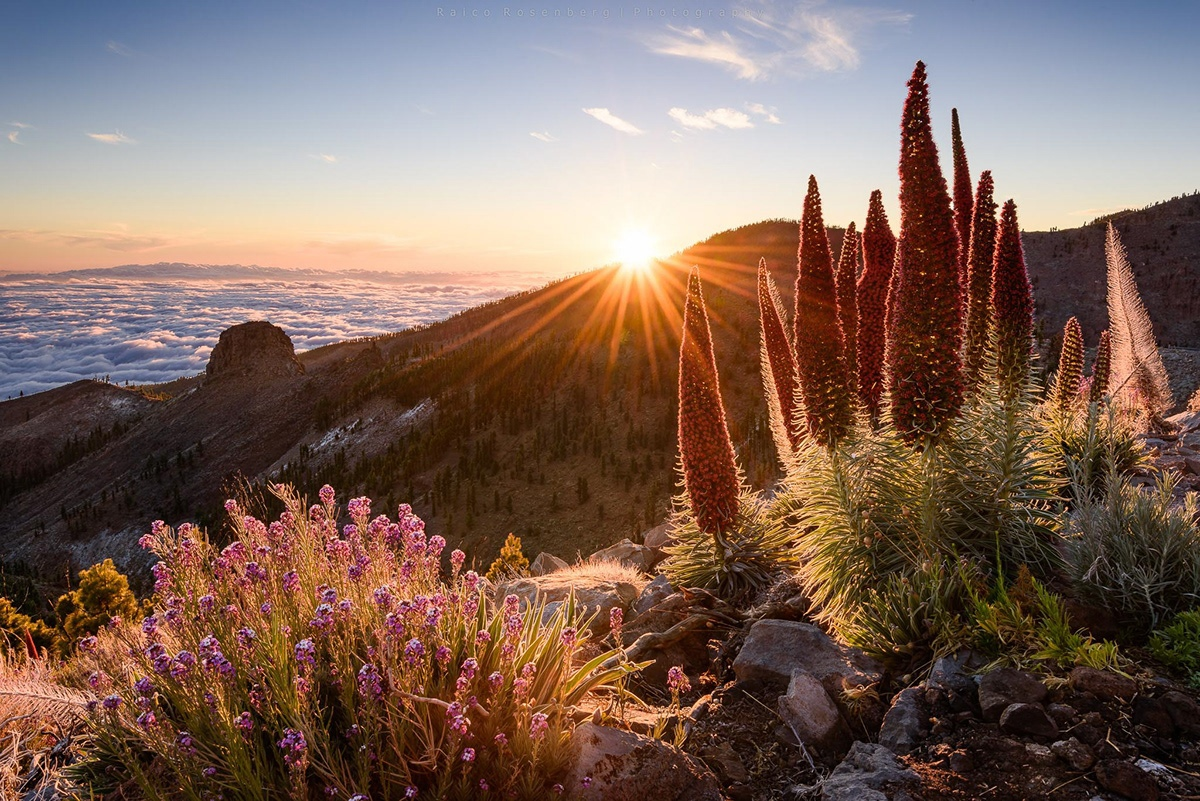 Каждый май на склонах вулкана Тейде раскрываются красочные трёхметровые башни из тысяч маленьких цветков, которые всего за три недели осыпаются. После цветения от них остаются лишь колючие скелеты, стоящие в вулканическом пепле, как памятники. Это не трагедия, а результат жизненной стратегии тахинасте, растения, которое умирает сразу же после цветения.