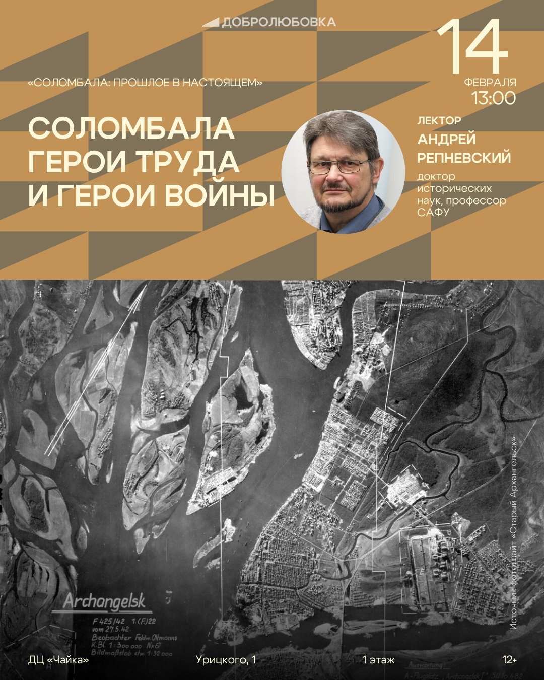 14 февраля в 13:00 в Добролюбовке состоится завершающая лекция Андрея Репневского из цикла Соломбала: прошлое в настоящем. Он расскажет об истории Соломбальского машиностроительного завода и о работе местных предприятий в годы войны, о судьбах героев-соломбальцев, участников Великой Отечественной войны.
