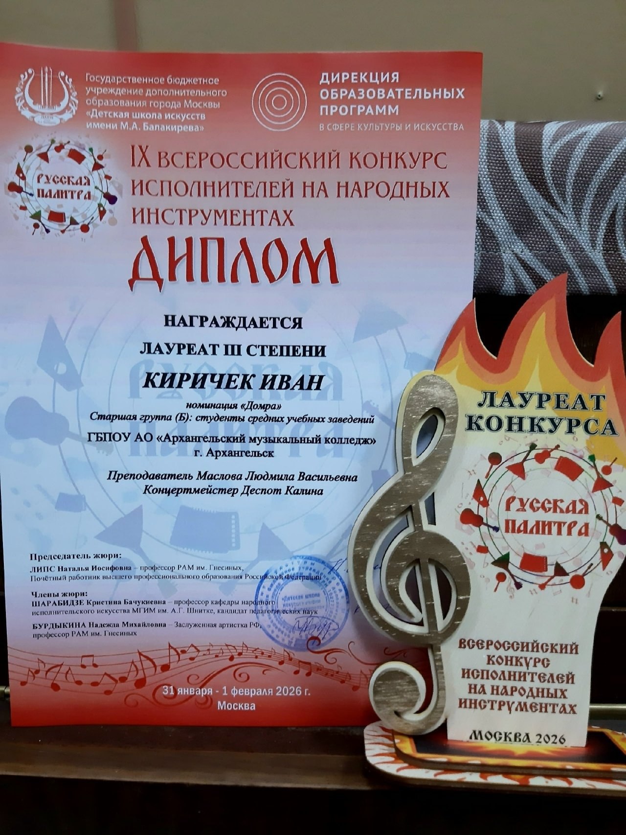 Поздравляем Ивана, концертмейстера Марию Аркадьевну Петрик и педагога Людмилу Васильевну Маслову с победой.