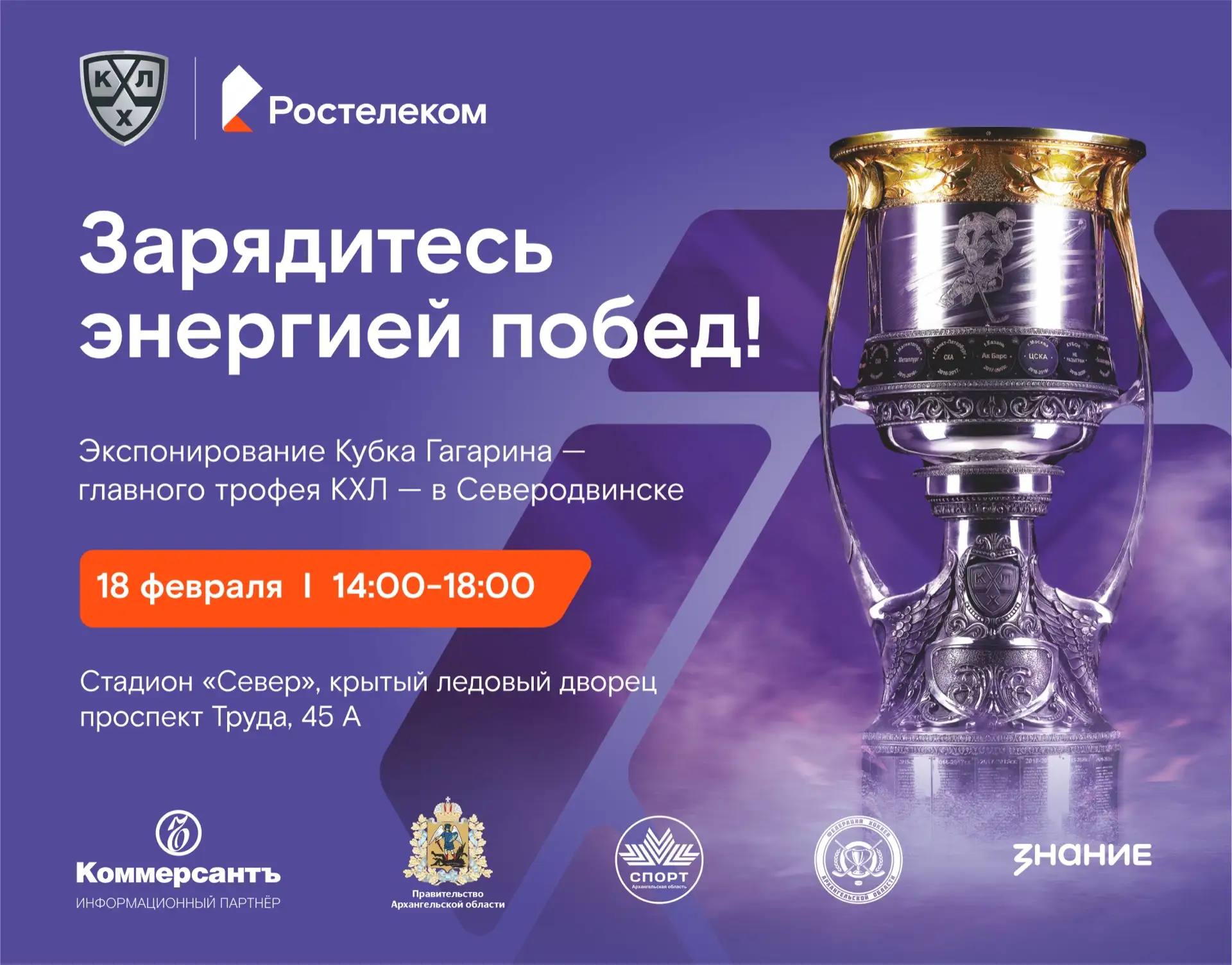 18 февраля новая Ледовая арена на стадионе «Север» откроется турниром Кубка Гагарина по Северо-Западу. Главный трофей Чемпионата Континентальной хоккейной лиги жители города корабелов смогут увидеть с 14:00 до 18:00.