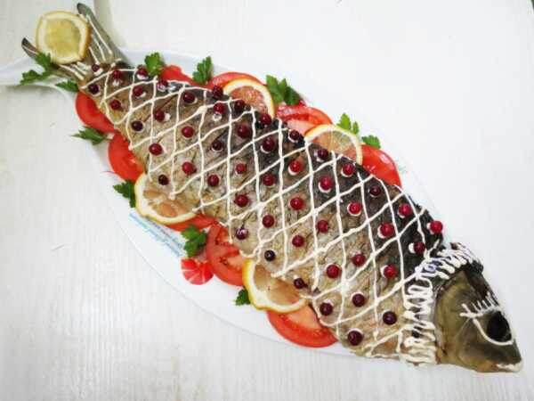 Карп весом около двух килограммов, лук, морковь и шампиньоны создают основную начинку, а соль, перец и специи для рыбы добавляют характер. Легкий акцент масла и сметаны превращает блюдо в легкий, но насыщенный вариант для семейного меню.
