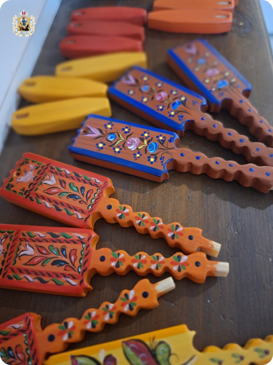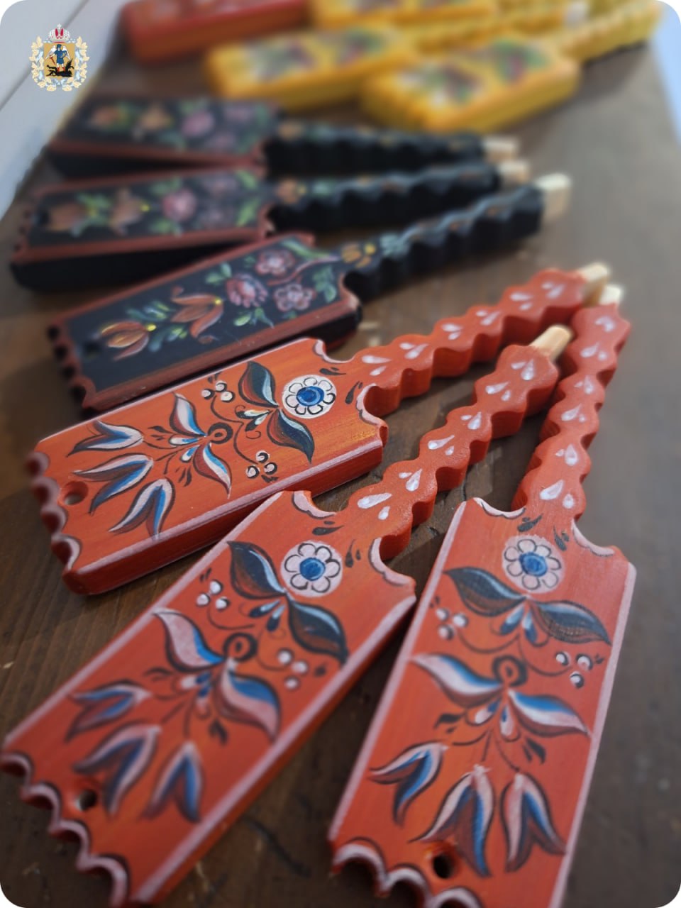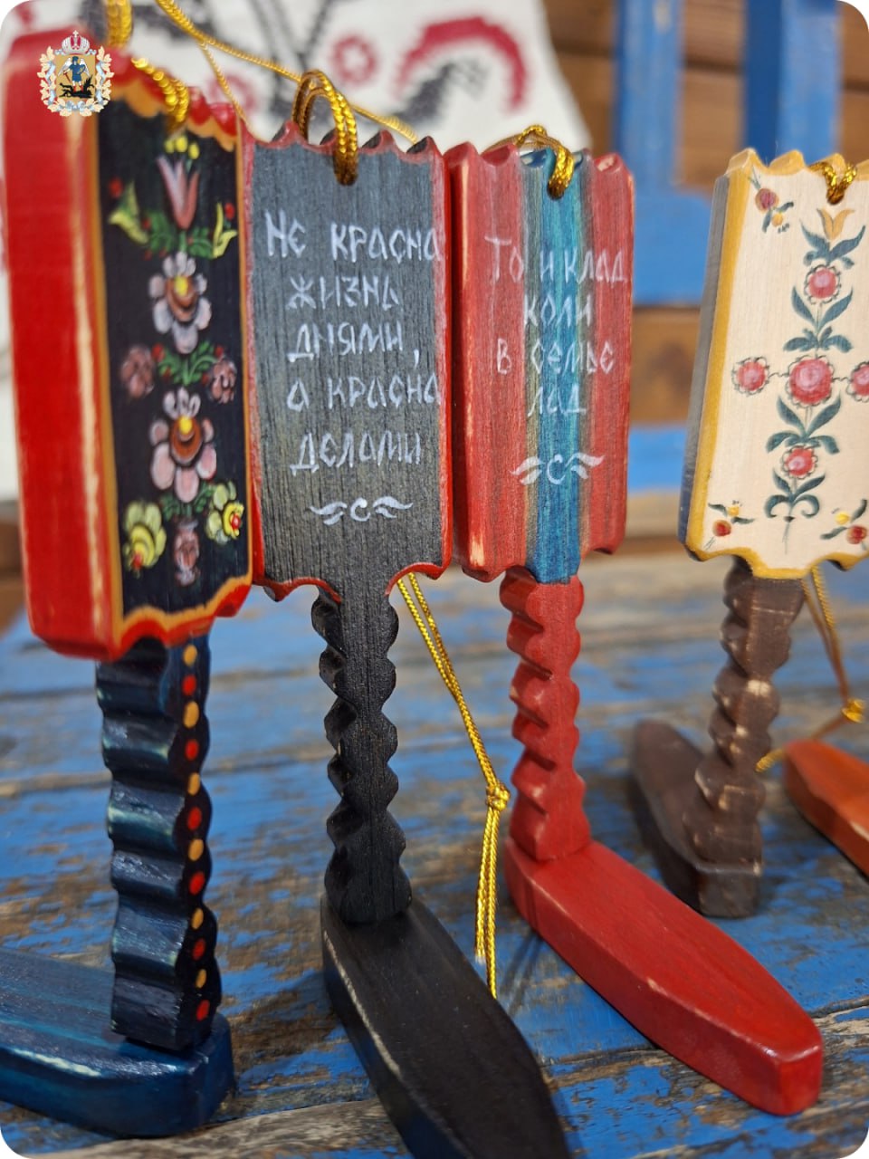 Элементы узоров перенесены с подлинных музейных экспонатов, книжных страниц и раритетов антикварных лавок. Высота каждой – всего лишь 9,5 см. Изготовили малюток из сибирской лиственницы.