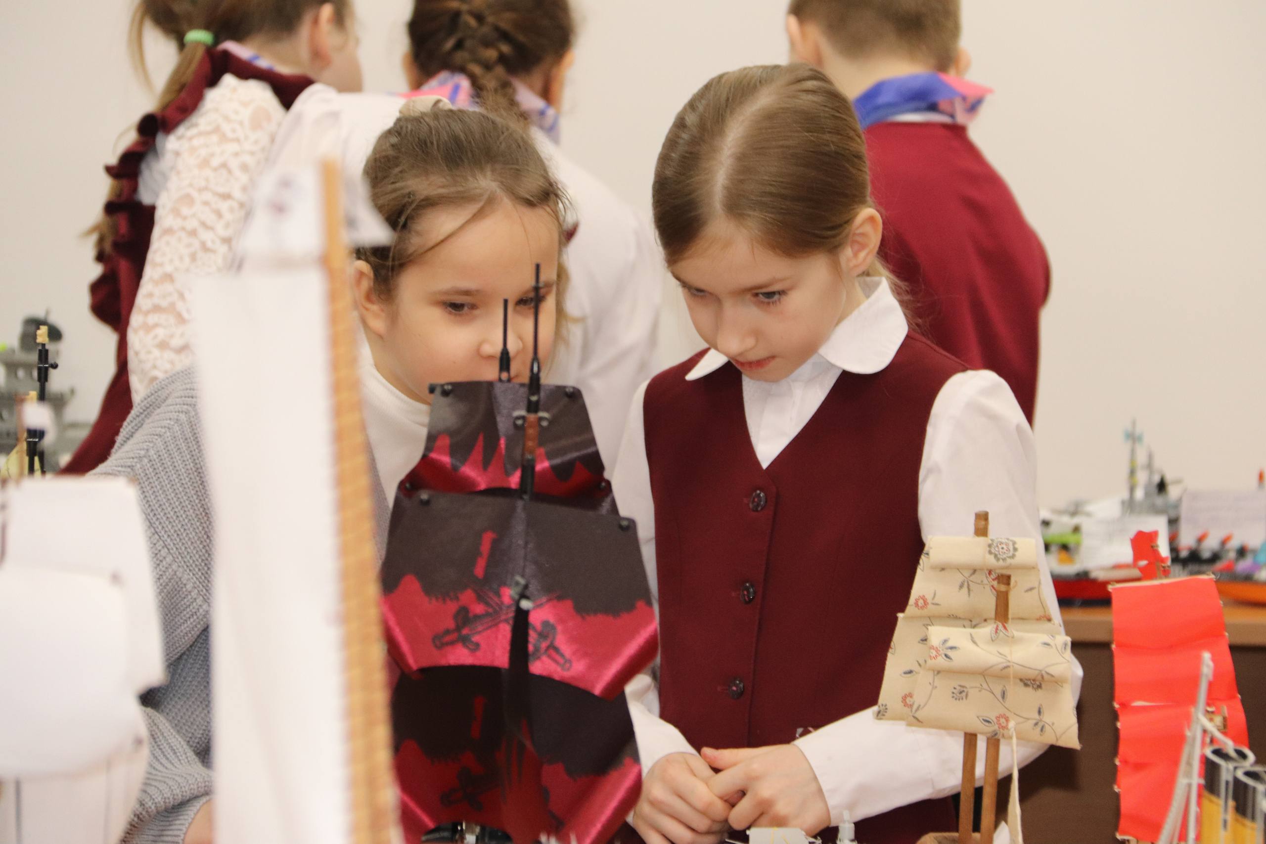 Первыми посетителями экспозиции стали ученики 4В класса школы №19. Ребята с интересом рассматривали модели кораблей, изготовленные их сверстниками, и с восторгом делились эмоциями.