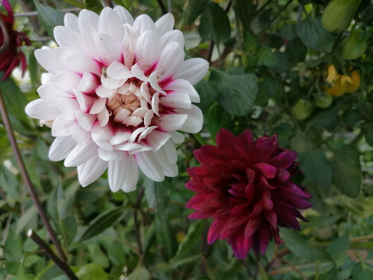 Одной из самых интересных разновидностей является георгин Ребекка Уорлд. На одном кусте одновременно распускаются цветы с яркими бордовыми и белыми оттенками, создавая невероятный эффект.