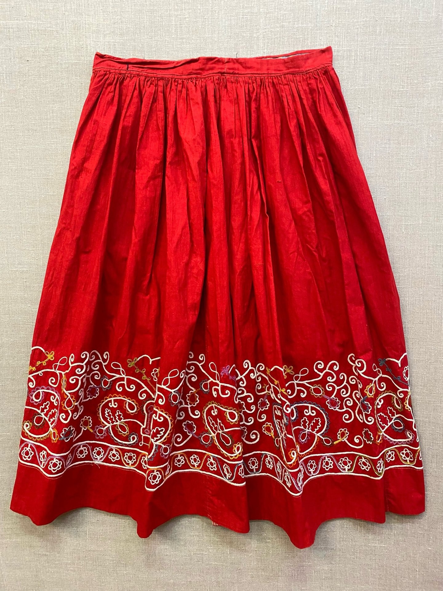 В Каргопольском музее появились два редких предмета — юбки из красного кумача с тамбурной вышивкой