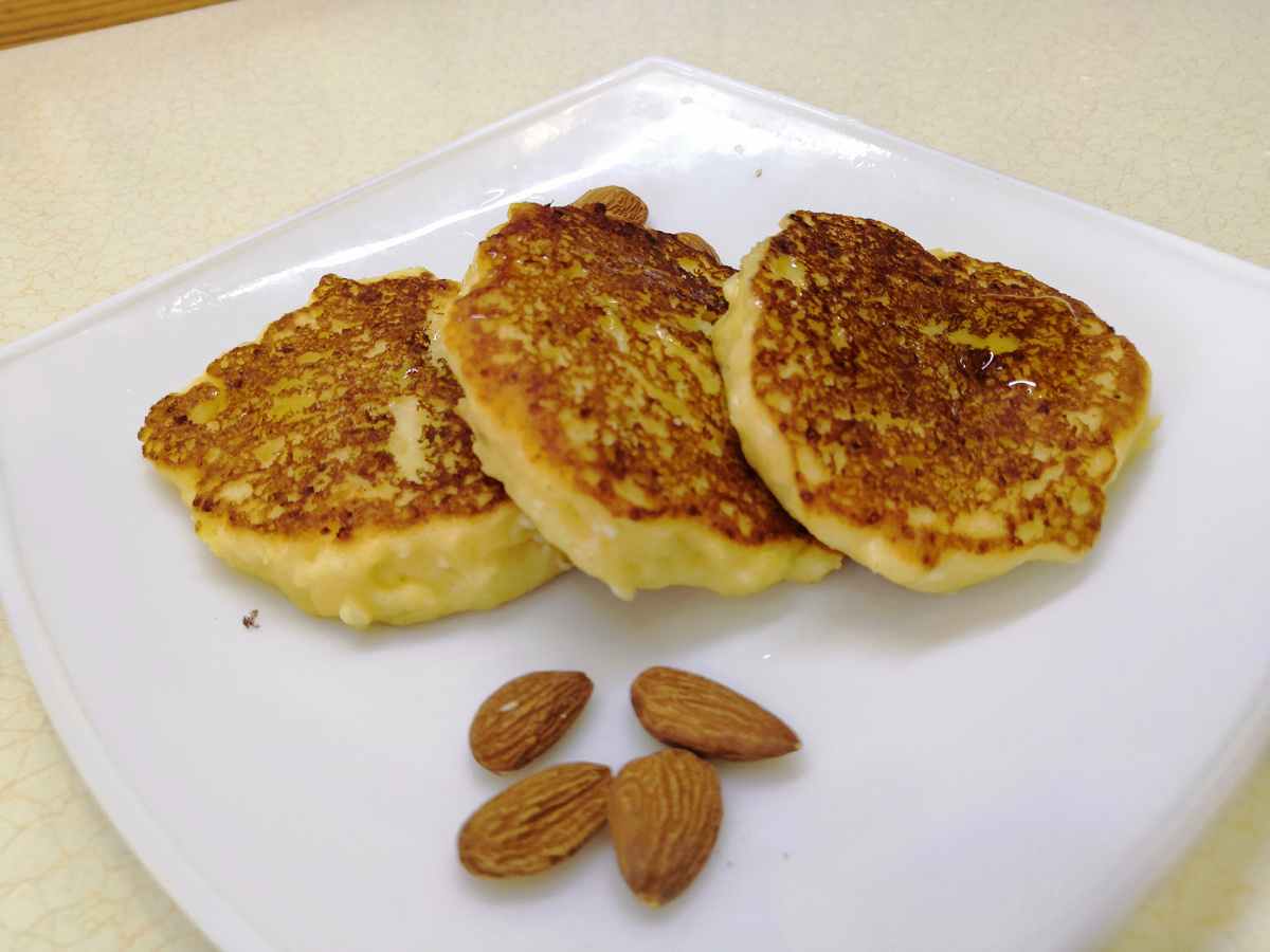 На финальном этапе в получившуюся массу вводится рисовая и кукурузная мука, и все снова перемешивается. Затем сковороду смазывают маслом, и с помощью столовой ложки выкладываются небольшие порции теста. Оладьи должны быть достаточно толстыми.