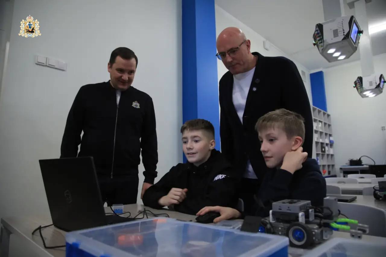 Заместитель Председателя Правительства России Дмитрий Чернышенко и губернатор Архангельской области Александр Цыбульский посетили фиджитал-центр, который открылся в феврале этого года на базе архангельской школы №7.