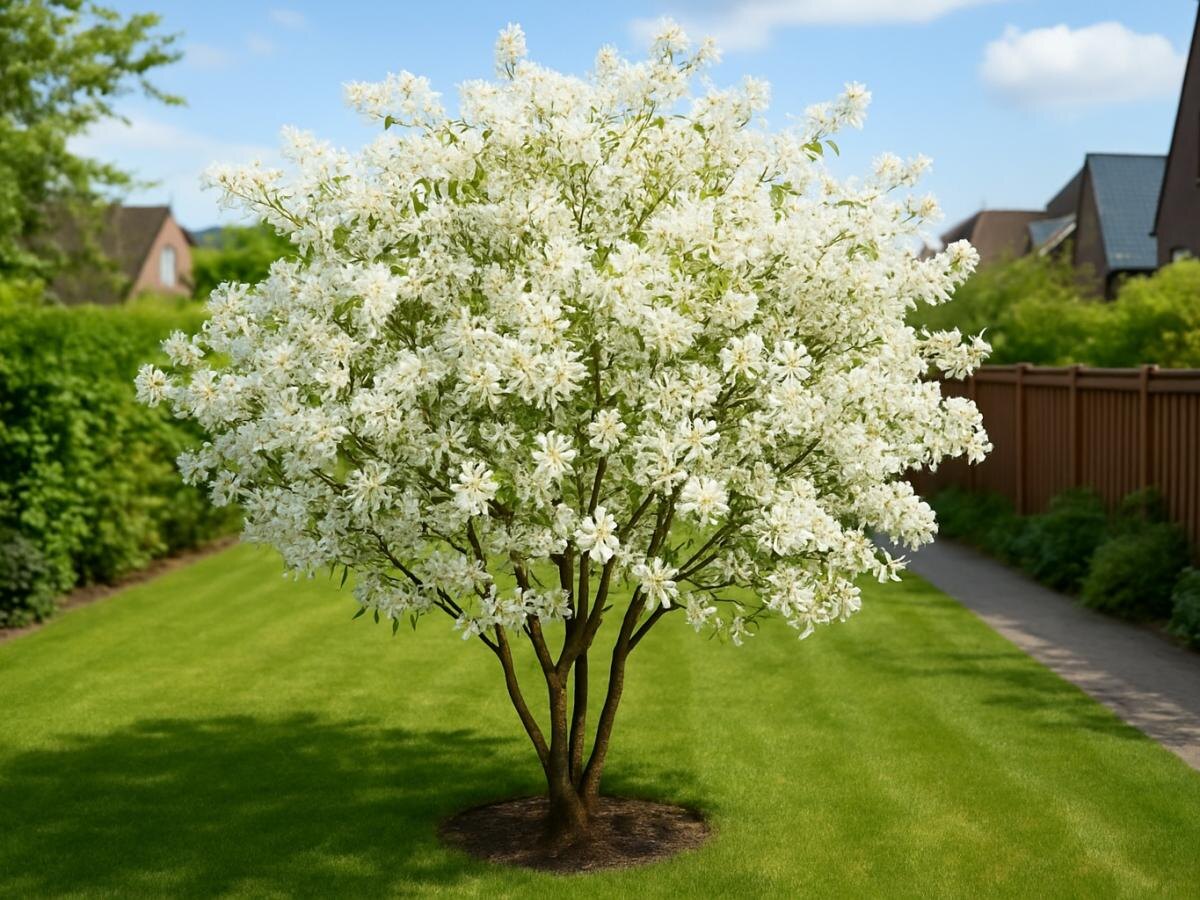Дерево Amelanchier lamarckii привлекает многих владельцев участков своим гармоничным сочетанием эстетики и функциональности. Оно вырастает примерно на 40-50 сантиметров за сезон и уже через несколько лет способно давать густую тень, добавляя объем и уют вашему саду.