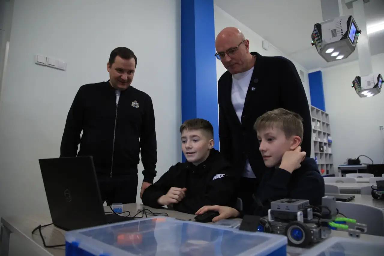 Заместитель Председателя Правительства России Дмитрий Чернышенко и губернатор Архангельской области Александр Цыбульский посетили фиджитал-центр, который открылся в феврале этого года на базе архангельской школы №7.