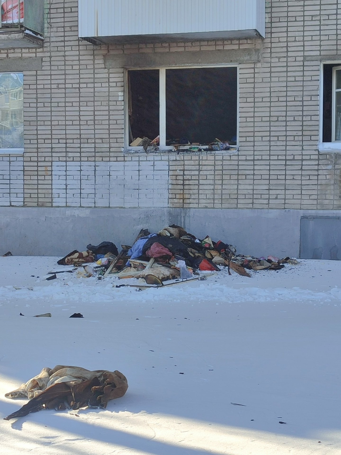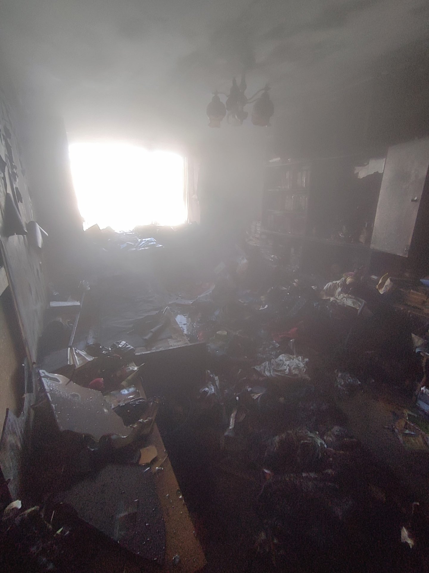 В результате пожара одна из комнат выгорела полностью. Квартира и общий коридор сильно закопчены.