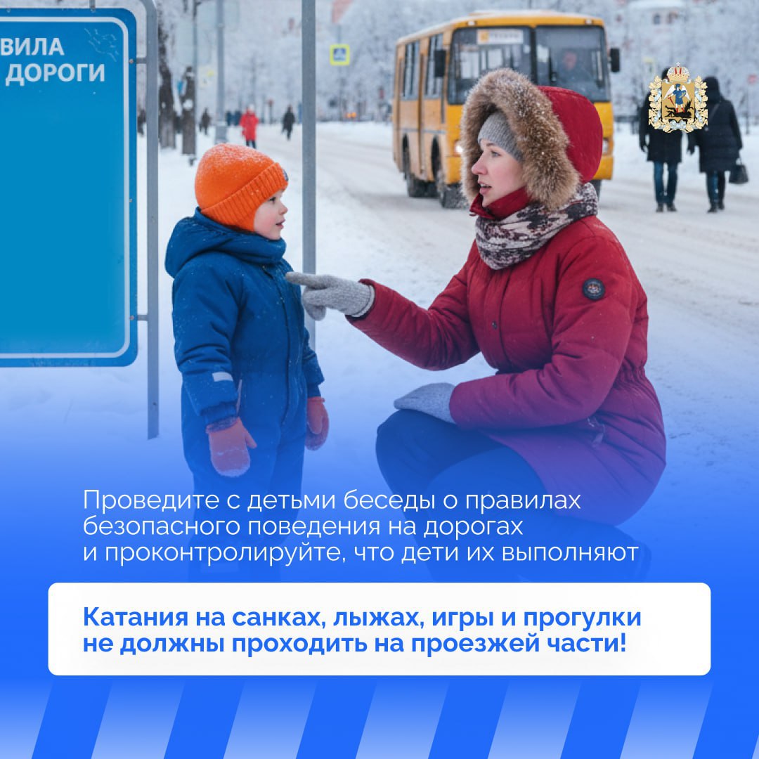 А мы напоминаем вам об основных правилах безопасности! Обязательно проведите беседу со своим ребенком о том, как и где можно играть в холодное время года.
