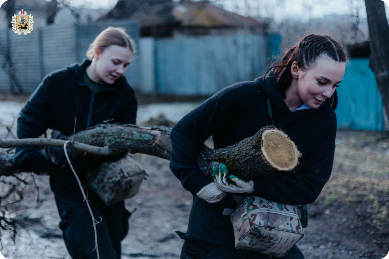 Команда работала на складах, помогала учебным и административным учреждениям, восстанавливала дома и благоустраивала придомовые территории. Также волонтеры оказали помощь в разгрузке продуктов и строительных материалов.