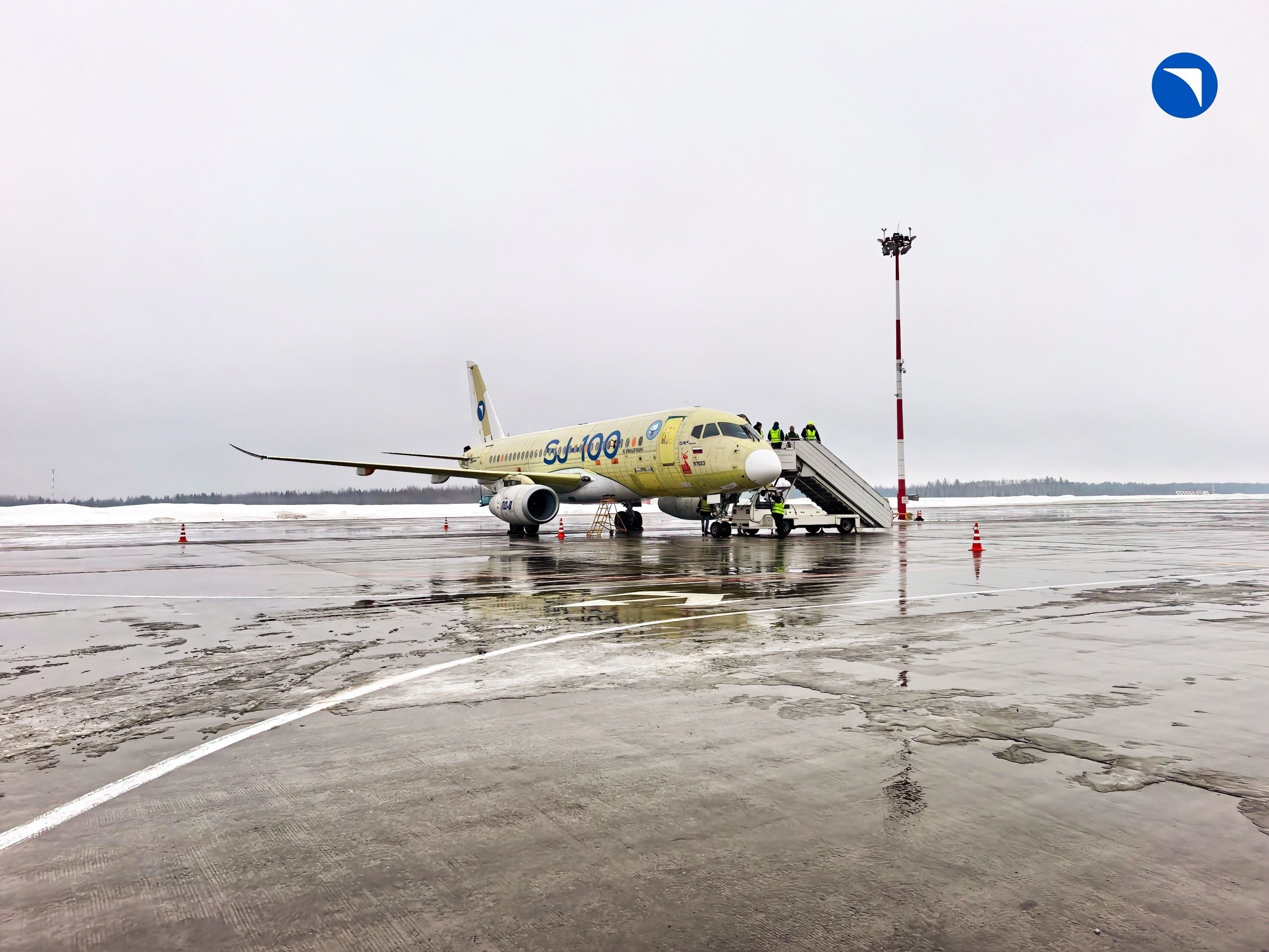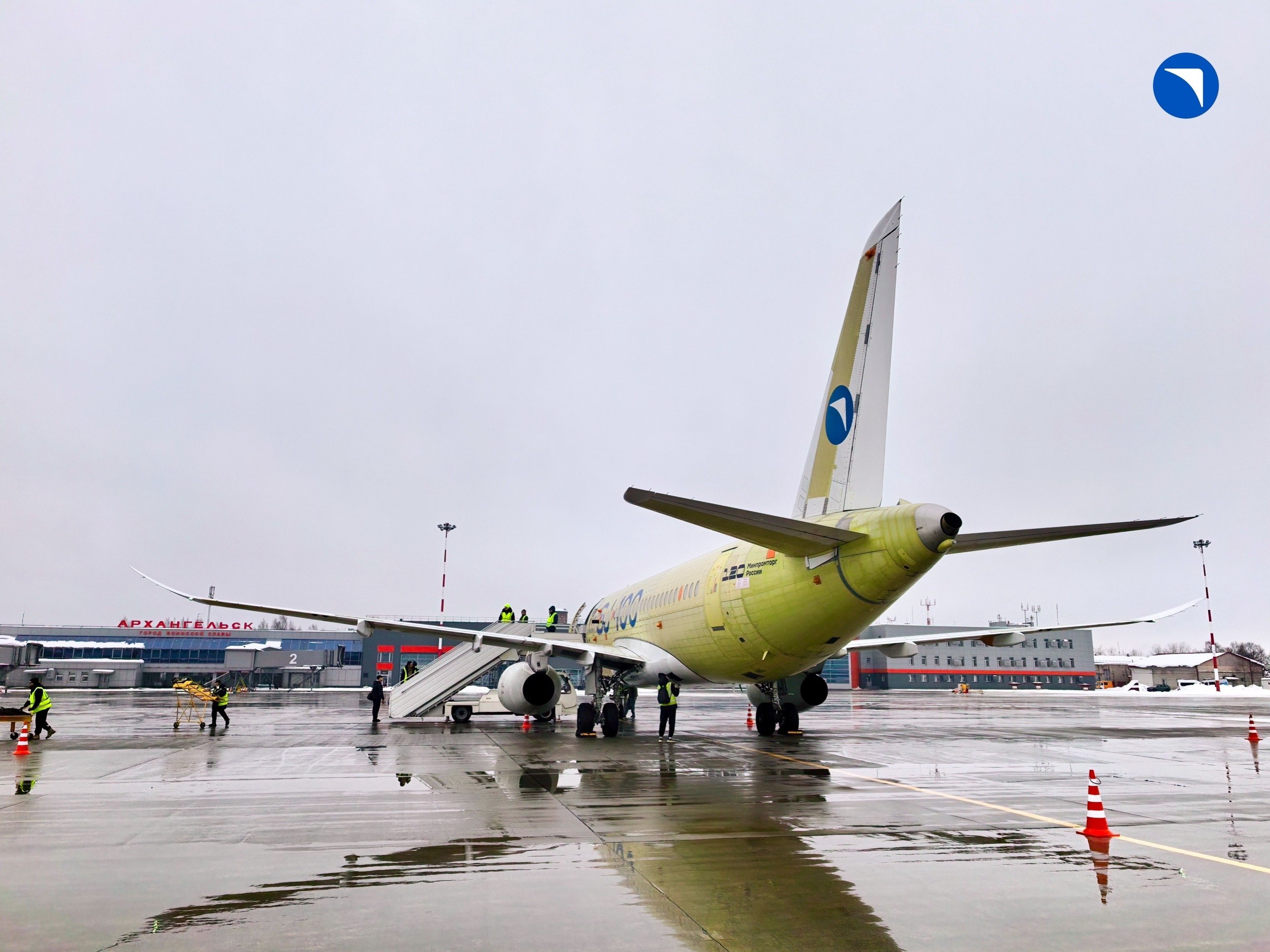 SJ-100 прилетел в аэропорт Талаги на испытания