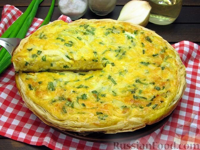 - Открытый пирог из слоеного теста: Легко готовится из готового слоеного теста с ароматной начинкой из лука, яиц и сыра. Такой пирог будет настоящим украшением любого стола!