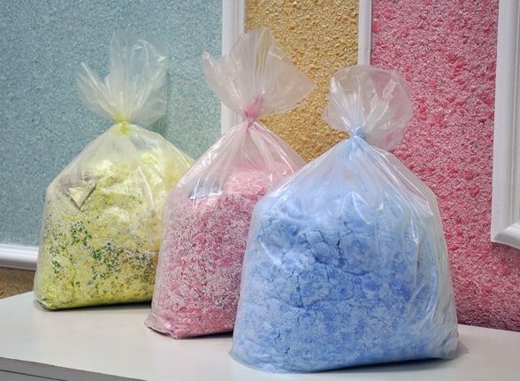 Основой жидких обоев служит целлюлозное волокно, которое приготавливается путем измельчения. В эту массу добавляются клей, красители и декоративные элементы. В качестве декоративных добавок могут использоваться: