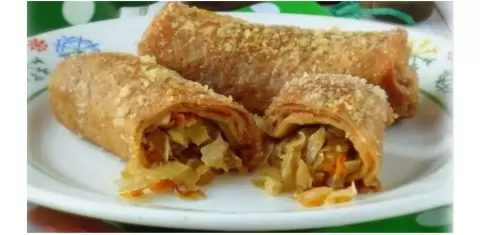 Для теста взбить яйца с молоком, добавить соль и сахар. Затем вмешать муку и растительное масло до однородной консистенции. Если тесто получилось слишком густым, можно добавить немного воды. Испеките блины и выложите капусту на каждый блин, завернув его.
