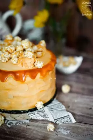 Классическая сборка включает чередование коржей, джема и крема. Для наилучшего эффекта использованию разъёмное кольцо и ацетатная лента обеспечит идеально ровные края. Торт желательно охладить для стабилизации. Украсить карамелью и, по желанию, попкорном, чтобы создать невероятный вкус и текстуру.