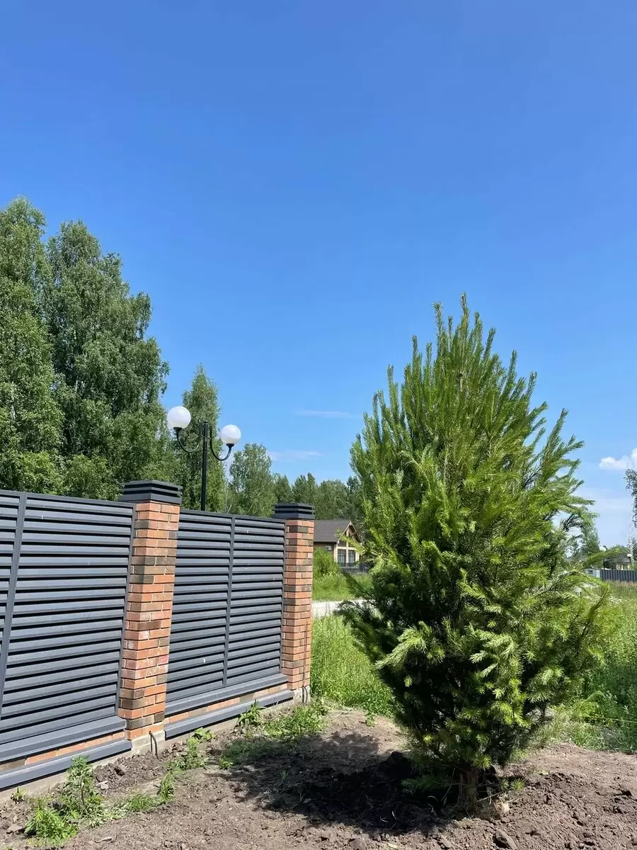 - Для крупных деревьев (ель, сосна, берёза) — 4–5 м от забора.
