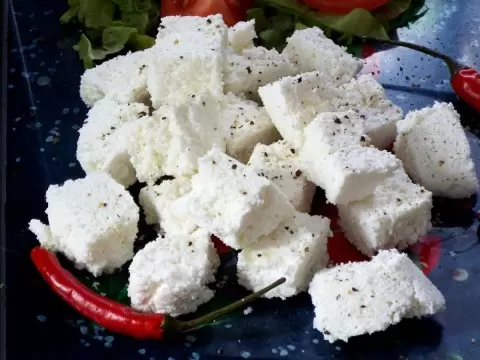 Этот сыр обретает текстуру, напоминающую фету — легкую, немного рассыпчатую, с приятной кислинкой и сбалансированной соленостью. Хотя это не точная копия греческого сыра, его уникальный вкус может порадовать даже самых взыскательных гурманов.