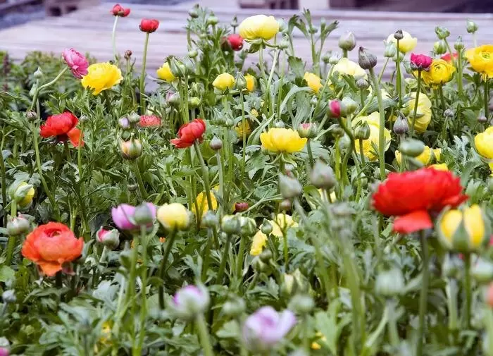 Ранункулюсы предпочитают умеренно влажную и богатую питательными веществами почву с нейтральным pH. Регулярный полив особенно важен в период активного роста и цветения. Необходимо удалять увядшие цветы для стимуляции появления новых бутонов. Для обеспечения обильного цветения следует подкармливать растения комплексными минеральными удобрениями, начиная примерно через 3-4 недели после появления всходов, а затем повторять подкормку каждые 2-3 недели.