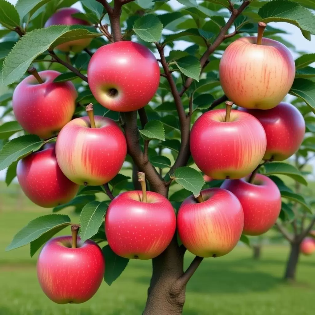 Следующий претендент на ваше внимание — «Симиренко», или «Ренет Симиренко», известный своим уникальным вкусом и отличными показателями урожайности. Этот сорт, полученный украинскими селекционерами, прекрасно чувствует себя как на юге, так и в северных регионах, при правильном выборе подвоя. Дерево вступает в плодоношение на 4-5 год, быстро накапливая урожай. Яблоки среднего и крупного размера, ярко-зеленые, с плотной и сочной мякотью, обладают сладким винным вкусом. Особенность «Симиренко» — невероятная лежкость; они сохраняют свежесть до июня следующего года, что позволяет наслаждаться вкусом яблок в любое время.