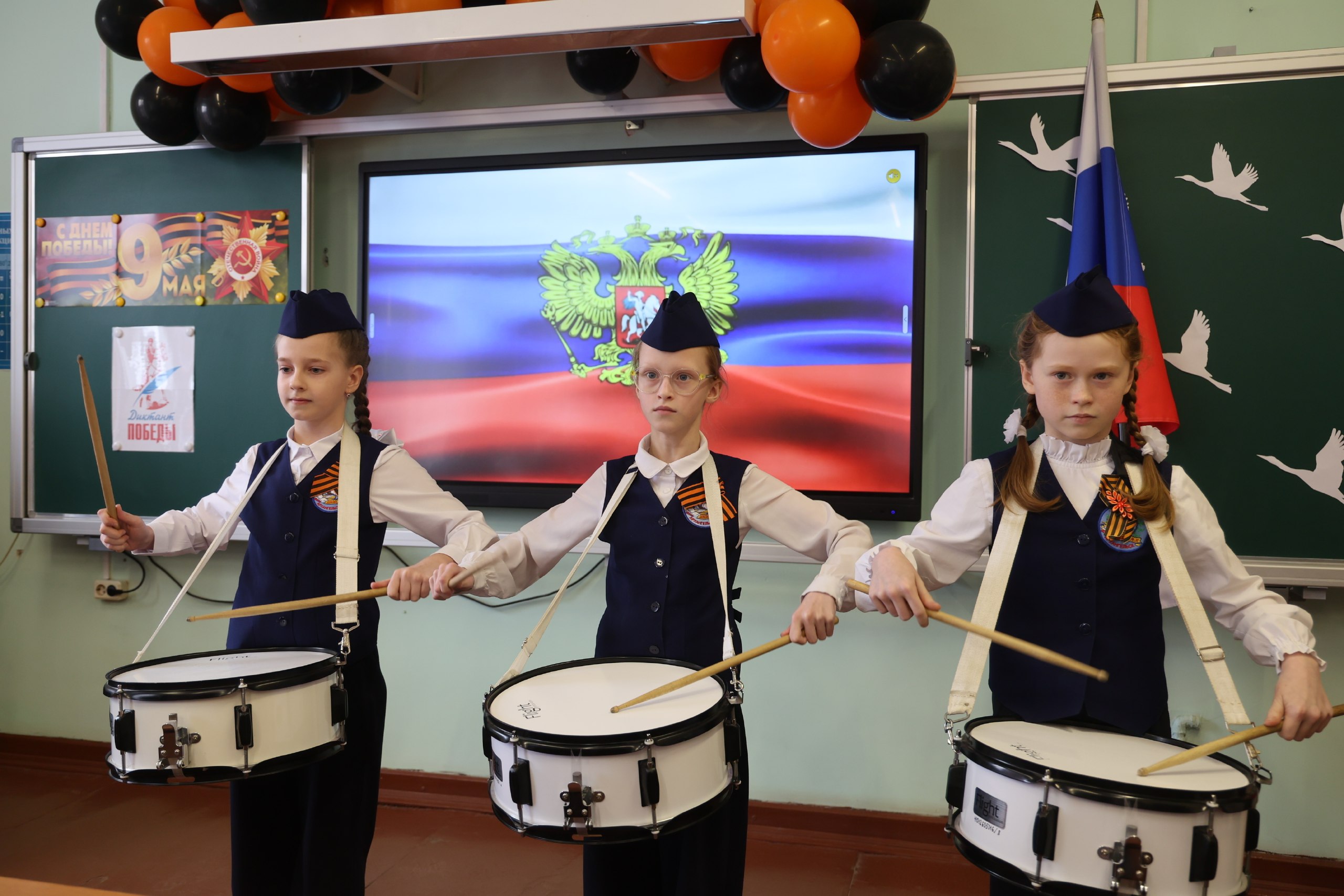 В день проведения патриотической акции перед учениками и гостями, среди которых были ветераны труда и СВО, выступила группа барабанщиков. Атмосфера была торжественная и сосредоточенная.