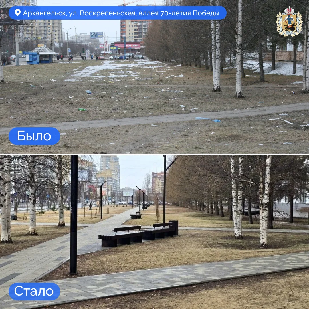 Эти два фото 2013 и 2026 годов, сделанные с одной точки — яркий пример того, как совместные усилия преображают город. Жители Архангельска дружно проголосовали за благоустройство, и благодаря финансированию по нацпроекту «Инфраструктура для жизни» территорию облагородили.