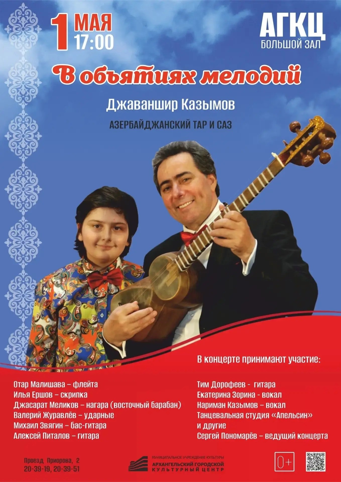 Перед вами выступит мастер игры на таре и сазе Джаваншир Казымов. В его исполнении прозвучат восточные мотивы, любимые советские мелодии, авторские сочинения и знаменитый «Архангельский вальс».